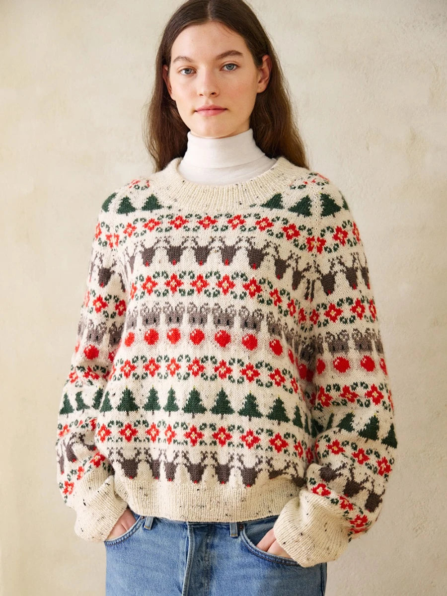 This is a sweater we originally launched a few years ago. Now we have updated the pattern and fit. This version is knitted from top-down. It has a wider body and sleeves and deeper armholes. Knitting tension and yarn type have also changed. Play around with other colour combinations, there are many possibilities here! Happy Christmas knitting!