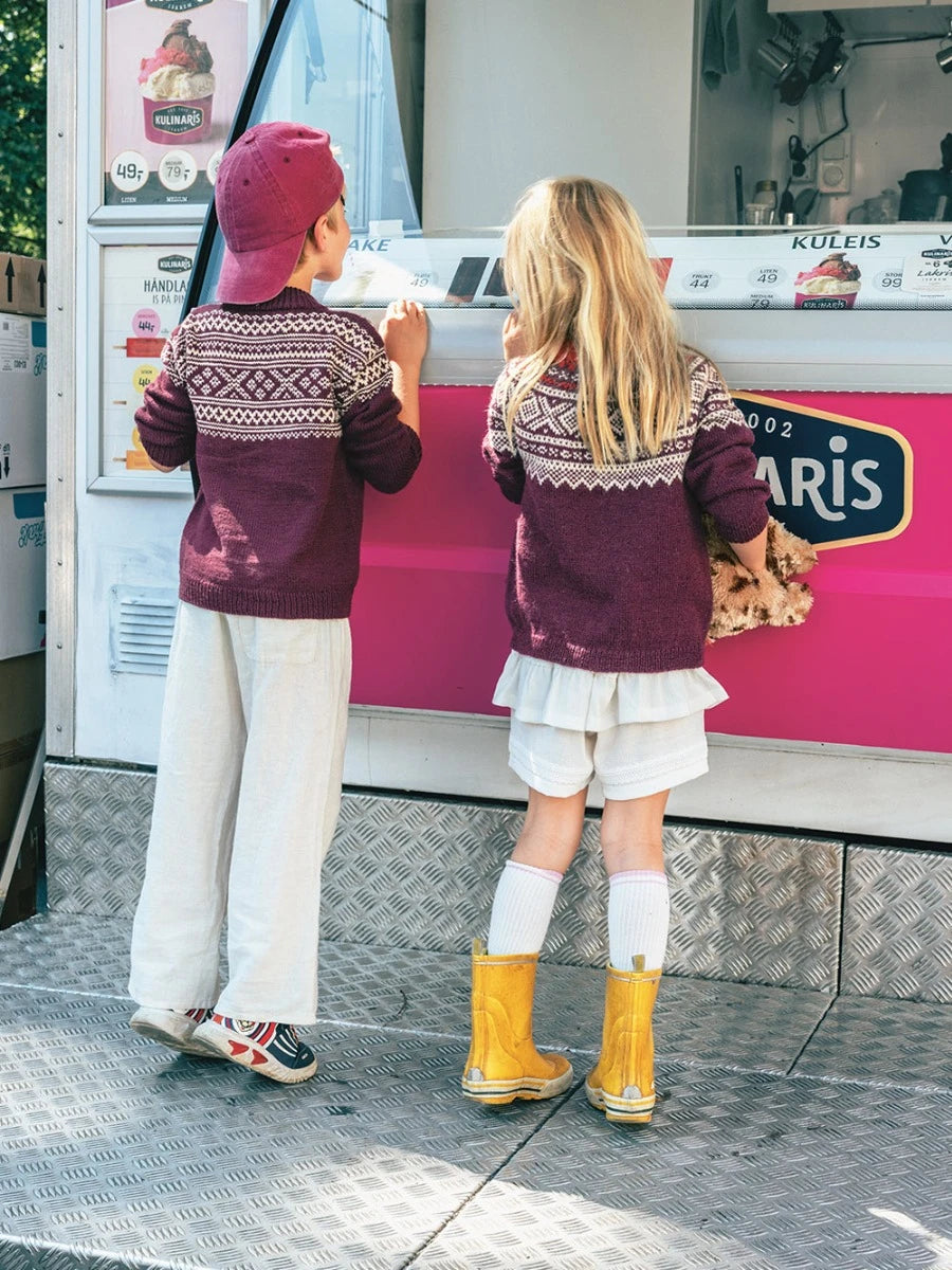 The Marius Sweater Junior is worked top-down in Babyull Lanett. A soft and classic version with round yoke and traditional Marius pattern. The pattern also includes the bottom-up version in Tynn Peer Gynt.