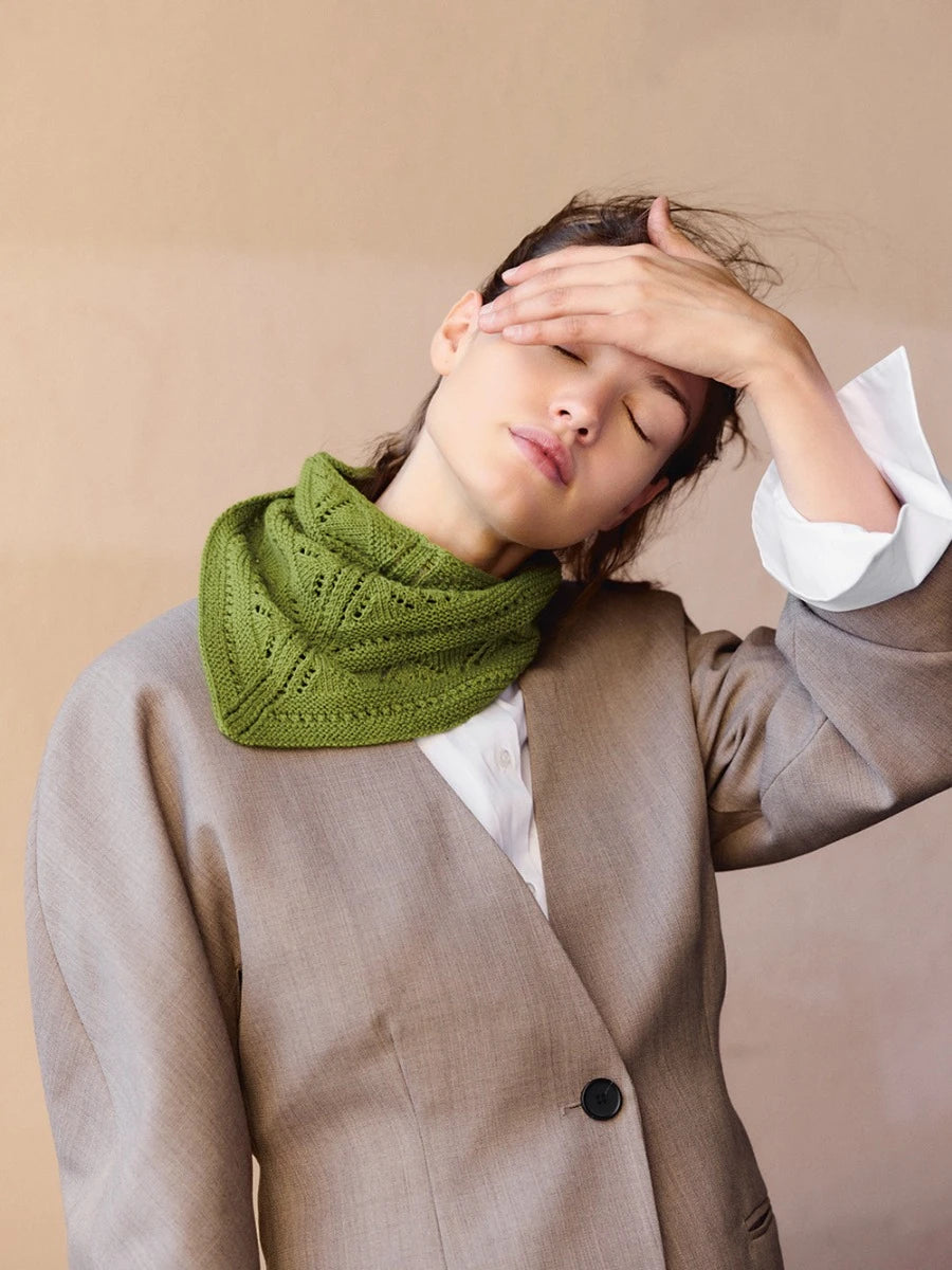The green sample is knitted in Sandnes Garn Cashmere in Matcha 9564.