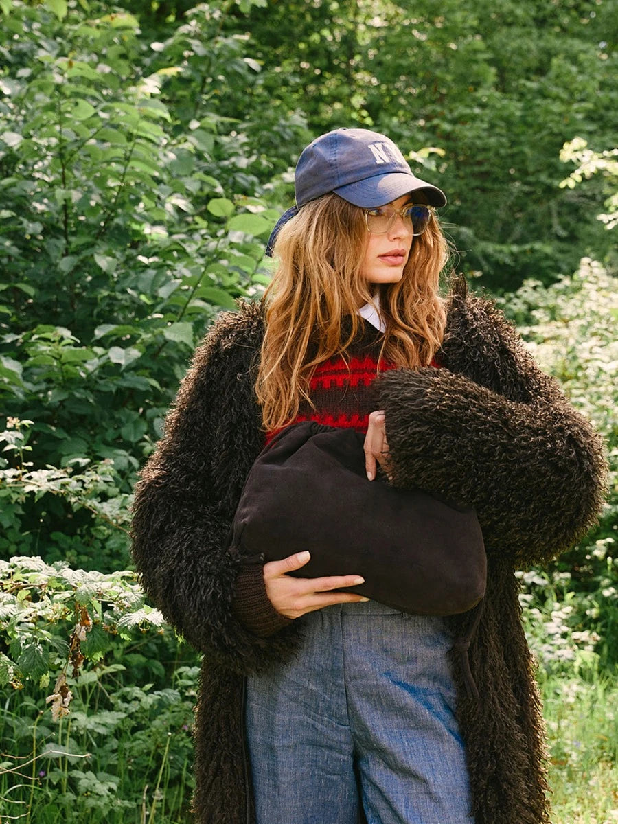 Ridge Sweater in Peer Gynt with pattern in Ballerina Chunky Mohair – a soft and cosy sweater with beautiful texture. Knitted from the top down, the fluffy mohair enhances the pattern for an extra striking effect. Perfect for playing with exciting colour combinations.