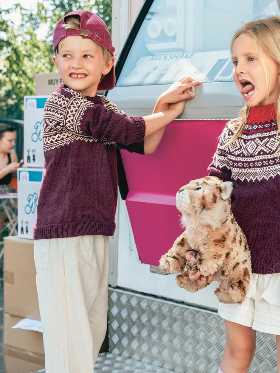 The Setesdal Sweater Junior is worked top-down in Babyull Lanett. A classic without lice, with modern fit and traditional pattern. The pattern also includes the bottom-up version in Tynn Peer Gynt with lice.